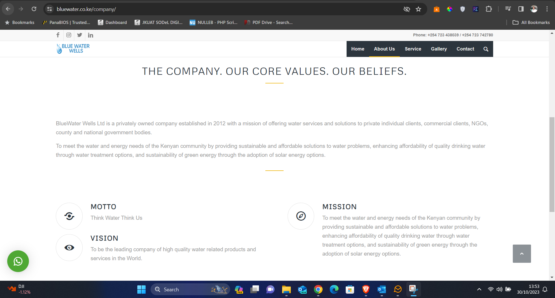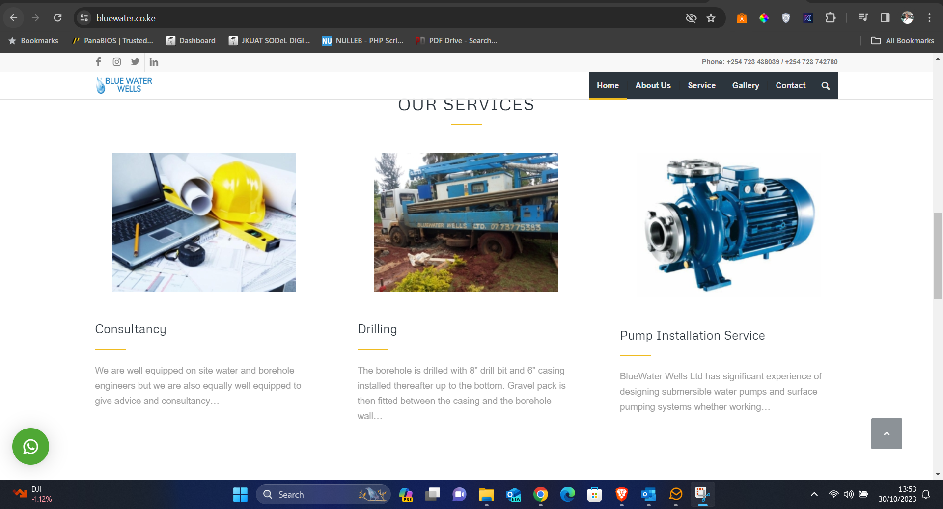 The website we developed for BlueWater Wells Ltd effectively represents their commitment to offering sustainable water and energy solutions to the Kenyan community. With an engaging home page, contact features, detailed service pages, and responsive design, the website offers a user-friendly experience and showcases their dedication to mission-driven work.