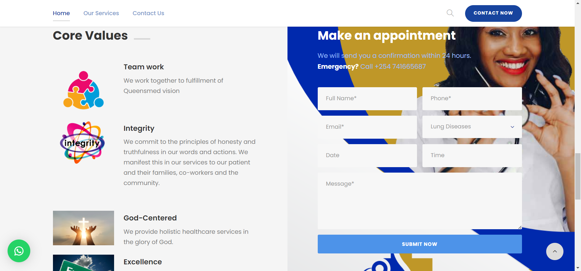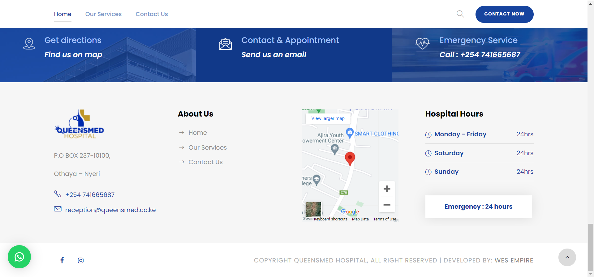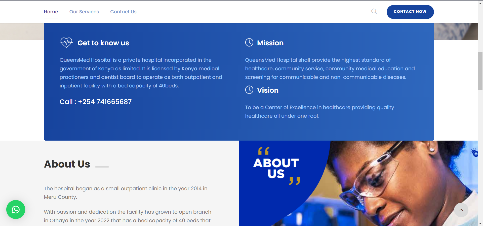 - Services: A dedicated 'Services' section where patients can explore and learn about the comprehensive range of healthcare services offered by QueensMed Hospital.